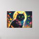 En svart katt mot en bakgrund av månljus, omgiven av vilda blommor och fjärilar, en atmosfär av magi och lugn på ljusa färger. (SNÄLLA! - Se även andra nya samlingar för fler val)