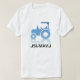 Det här är en vit t-shirt med en blå traktor på den och texten ᏗᎦᏓᎷᎪᏙᏗ under som är cherokespråk för traktor. Du kan anpassa den här t-shirten för att ändra färgen på typsnittet, ändra teckenstorlek och typ och mer för att förvandla den till din egen unika t-shirt.