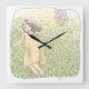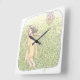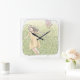 さなしむじ 広い緑の草原を追いかける兎から走って逃げる橙色のワンピースの女性 FYRKANTIG KLOCKA