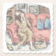 さなににじ お部屋の中で真っ赤なソファに腰を掛けてまったりカップをすする女性のイラスト UNDERLÄGG PAPPER