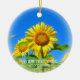 ひまわりをデザインした丸形のセラミックオーナメントです☆ 《テキストは自由にカスタマイズしてください。裏面も自由自在です。》 【Photo】ヒマワリ(向日葵)Sunflower