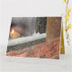 雪の降る窓辺にキャンドルの温かい炎が見えるカード。