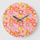 ピンク色が愛らしいレトロな黄色やオレンジ色のお花がたくさんの、素敵なラージ壁時計!プレゼントにも