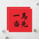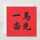 The four characters are an idiom typically translated as a horse is the first to ride the dust and used when describing situations involving leaders. Wish the recipient well to outperform their competition, especially if they are business owners,or students in school.