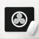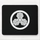 【まるにみつかしわ】柏紋。この図案は「平安紋鑑」他の”三つ柏の割”に則って作図したものである(2013/4/6作図)/柏の葉は太古においては食物を盛る食器であった。古代のコックは膳夫(かしわで)といわれ、そのカシワデのカシワをとって柏と命名された・・樹木の葉をまもる「葉守の神」は柏の木に宿るとされ、この葉を神事に用いた神職者は柏紋を使っている。藤原期の絵巻物中に描かれた衣服のに柏の文様が散見される(伊藤幸作編「日本の紋章」)