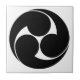 【ひだりみつともえ】巴紋/巴の左右は渦の巻き方ではなく、作図上から作られた合理的な名称なのでした。こうしたことは、上絵師ならすぐに判ることですが、一度も紋を作図したことのない先生はただ渦の巻く方向にだけ気を取られるのでしょう。しかし、上絵師でも咄嗟に巴の左右に迷うことがあります。そんなとき、上絵師はうまい口伝を思い出します。・・・まず左掌を握って手首を見ます。するとその形が左巴の形になっているのです。右掌を握れば、たちどころに右巴の形が現れるわけです。(泡坂妻夫著「家紋の話」P61)/この図案は、地抜き(摺込み)仕様です。摺込みというのは・・作図して巴を切り抜いて型紙を作り・・この型紙を生地の上に置き、塗料を刷毛で摺込む、その技法からきた言葉です(泡坂妻夫著「卍の魔力、巴の呪力」P146参考)