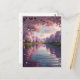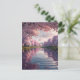 満開の桜の花が静かな湖面に映る、幻想的な春の風景を描いたポストカードです。
