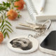鍵をまとめて、笑顔の犬と一緒に出かけましょう。裏面にはふさふさした尻尾の後ろ姿とイニシャル。