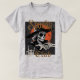 魔女の骸骨のデザインが特徴のこのシャツは、オレンジと黒の象徴的なハロウィンカラーを採用しています。