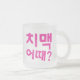 "치 맥 어 때?" Frosted Glass Coffee Mugg - How about Chicken & Beer? Sparka tillbaka med stil och en sväng till Koreas favoritkamouflage! Det här frostrade glaskaffet mugg innehåller den lekande frasen 치 맥 때? ("Vad sägs om chimaek?"), som firar den ikoniska parningen av friterad kyckling och öl. Oavsett om du dricker morgonkaffe eller dricker en kyld dryck, så ger mugg en coola, modern vibe med en gnutta K-kultur-roligt. Perfekt för fläkt av koreansk mat, avslappnad hängning eller någon som kärlek personlighet i sin dricksvara.
