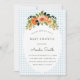 001 Sky Blue Floral Gingham Baby Shower Invitation Inbjudningar
