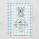001 Sky Blue Plaid Koala 1st Birthday Invitation Inbjudningar