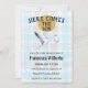 002 Cerulean 020 Fog Sun Plaid Stork Baby Shower Inbjudningar