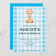 Perfect for baby's first birthday, this invite features an adorable giraffe with a charming watercolor check background.