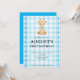 002 Cerulean Blue Check Giraffe Birthday Invite Inbjudningar