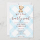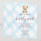 002 Cerulean Blue Teddy Bear Gingham Baby Shower Inbjudningar