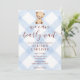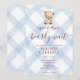 003 Cobalt Blue Teddy Bear Gingham Baby Shower Inbjudningar