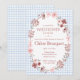 003 Cobalt Blue Wildflower Bow Gingham Baby Shower Inbjudningar