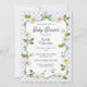 004 Indigo Blue Floral Daisy Plaid Baby Shower Inbjudningar