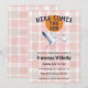 007 Röd Vattenfärg Rutmönster Stork Boho Bebis Sho Inbjudningar