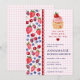 Denna charmiga inbjudan till baby shower blandar en mjuk gingham-bakgrund med handmålade vattenfärgade bär och en söt cupcake-center, vilket skapar en fräsch, trädgårdsinspirerad känsla. En delikat blandning av jordgubbar, hallon, körsbär och blåbär ramar in designen, medan den lekfulla scallopade kanten tillför en touch av vintage-söthet. Perfekt för bärteman, dessert-shower eller en mjuk feminin sammankomst, sätter den en varm och inbjudande ton för en minnesvärd fest.