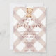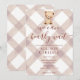 013 Chocolate Brown Teddy Bear Gingham Baby Shower Inbjudningar