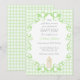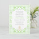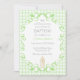 017 Moss Green Scroll Gingham Cross Candle Baptism Inbjudningar