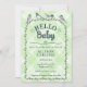 017 Moss Green Watercolor Gingham Bird Baby Shower Inbjudningar