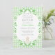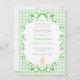 018 Grass Scroll Gingham Cross Candle Baptism Inbjudningar
