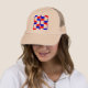 En vågad geometrisk utformning bestående av böjda vinkla former i alternerande riktning med alternerande färg.