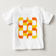 En vågad geometrisk utformning bestående av böjda vinkla former i alternerande riktning med alternerande färg.