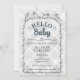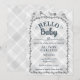 020 Dimsgrå Vattenfärg Rutmönster Fåglar Baby Show Inbjudningar