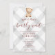 020 Fog Grey Teddy Bear Gingham Baby Shower Inbjudningar