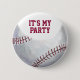 Personlig Birthday Baseball Button säger till alla att det är din dag. En del av en roligt och en fet svart och röd baskiska party-matarmatur på 12, som är nödvändig för ditt idrottstema party. Party!