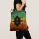Orient night illustration: En moské och handflatan silhouette på natten himlar med måne och stjärnor reflekterande på vatten.
