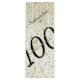 Den här elegant grafiken är en svartvit och guld-århundradenerisk födelsedagskalender. Den svarta typografienumret "100" är kantad med guld och guld texten "Centenarian" är kantad med svart. Bakgrunden är guld och vit, sprinklad med konfetti. Om du har en älskad som vrider 100 år, så är den här designen en en roligt för att slå in 100-årsgåvor.