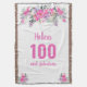 Elegantens utformning för en 100:e födelsedagsfest med rosan "100 och fantastisk" och ett skript namn som är förskönat av en feminin vattenfärgblomma på vit bakgrund. Anpassa ålder, text, namn och bakgrund färg.