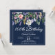 Elegant marinblå och vilda blommor 100-årsdag inbjudan som du kan anpassa med dina fests detaljer.