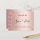 En elegant och enkel Spara datumkortet för en 100:e födelsedagsfest. En chic ro guld-bakgrund dekorerade rosa och ro guld vattenfärgade botaniska blommigtar. Mallar för ett datum och namn/ålder 100. Svart färgad brev. Texten: Spara datumet skrivs med ett stort trendig-handskript i stil. Tips! Om du inte vill att det ska se ut som ett vykort klickar du på anpassa, går till baksidan och tar bort delaren och lägger till frimärke.