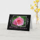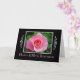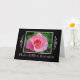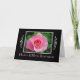 Ett elegant-kort med en perfekt rosa ros mot ett svart gräns.