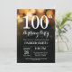 100-års inbjudan med guldsträngljus och guldglittrig bakgrund. Guld födelsedag. Vuxen födelsedag. Inbjudan för män eller kvinnor. 13:e 15:e 16:e 18:e 20:e 21:a 30:e 40:e 50:e 60:e 70:e 80:e 90:e 100:e, Alla åldrar. För ytterligare anpassning, klicka på "Anpassa"-knappen och använd vårt designverktyg för att ändra denna mall.