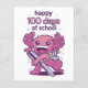 Den ruttna designen med en axolotl med ryggsäck och en stor penna med citatet "Lycklig 100 skoldagar". Lycklig 100 skoldag eller dagis.