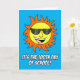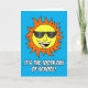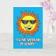 100-årsdagen för skolan med en coola sol med skuggor. Ett underbart kort för skoldagens 100:e dag. På insidan står det: "Du är 100 dagar ljusare!" Underbar pun för skolans hundraårsjubileum.