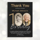 Elegant Black Guld 100 på födelsedagen - tack för ditt kort. Höj milstolpen firande med ett tack-kort som symboliserar underskattad elegans och minimalism i chicen. Vårt svarta och guld-tema utstrålar sofistikering och skapar en förfinad atmosfär för er speciella dag. Anpassningsbarnas fotofunktion lägger till en personlig som gör att varje inbjudan är ett unikt och omhuldat minne. Konstruktionens enkelhet ökar dess allmänna dragningskraft, skapar ett djärvt påstående genom rent linjer och en smakfull blandning av svarta och guld. Gå med oss för ett firande där varje detalj är genomtänkt för att återspegla den skönhet som man finner i enkelhet och skapa minnen som är lika tidlösa som själva tillfälle.