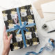Guld party-ballonger som exploderar i en vit låda på svart bakgrund med gnistor under 100 års födelsedag.
