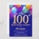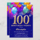 100:e födelsedag Blått och färgat ballonger i Guld Inbjudningar