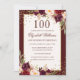 100:e födelsedag Guld Burgundy-inbjudan till Blomm Inbjudningar