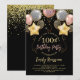 100:e födelsedag Guld Glitter svart Inbjudningar