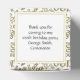 Säg "Tack" med det här guld och det här århundradenarska födelsedagstemat med hjälp av de mallar som medföljer. Bakgrunden är ett slumpmässigt tal mellan guld och vitt mönster med delstensnummer 100, som upprepas i olika storlekar och vinklar. Det finns en vit kvadrat överst och ett band runt mittenfronten för texten. Använda de enkla mallarna för att lägga till ditt eget ord, namn initialt eller monogram. Bilden är en roligt som du kan använda för att kapsla in små presenter eller party favors för din 100:e födelsedagsfest. Utformningen passar också för alla tillfälle som firar etthundra.