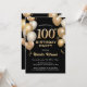 100:e födelsedag i svart och Guld Glitter Inbjudningar